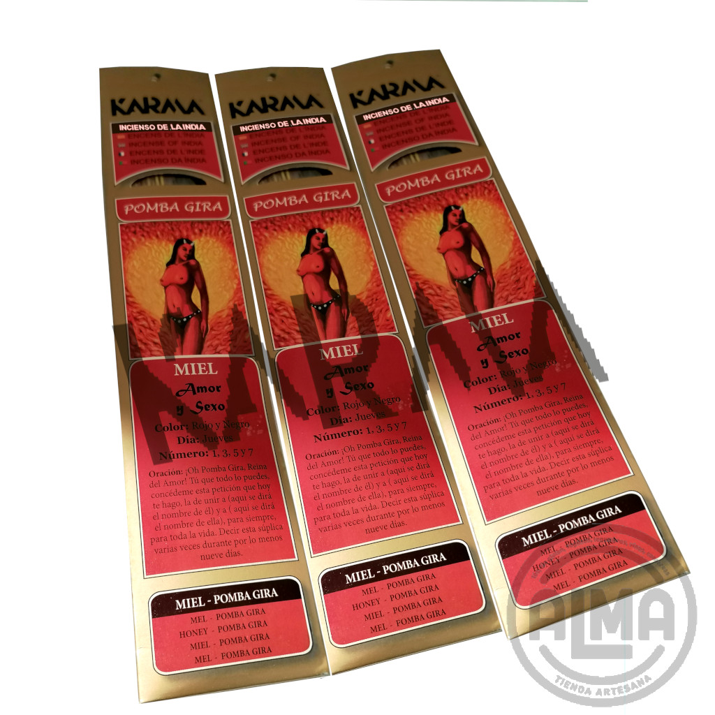 Este incienso invoca la poderosa energía de Pomba Gira, entidad femenina reconocida por su dominio sobre el amor, la sensualidad y la transformación personal. Su fragancia dulce a miel activa la atracción, fortalece el magnetismo personal y abre los caminos del deseo y la conquista. Representada por los colores rojo y negro, simboliza la pasión ardiente y el misterio profundo. Sus números asociados, el 1, 3, 5 y 7, conectan con la fuerza de la intención, la magia y la transformación. Ideal para rituales de amor, reconciliación, seducción o empoderamiento femenino. Incluye una oración dedicada a Pomba Gira para invocar su presencia, liberar bloqueos afectivos y abrir el corazón al amor y al placer verdadero.