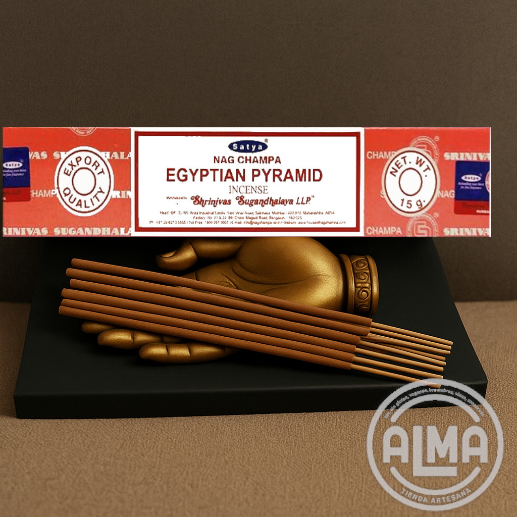 El incienso Egyptian Pyramid, combina esencias cálidas y especiadas que evocan el misterio y la sabiduría del antiguo Egipto. Es ideal para rituales de conexión ancestral, expansión de la conciencia y protección espiritual elevada.