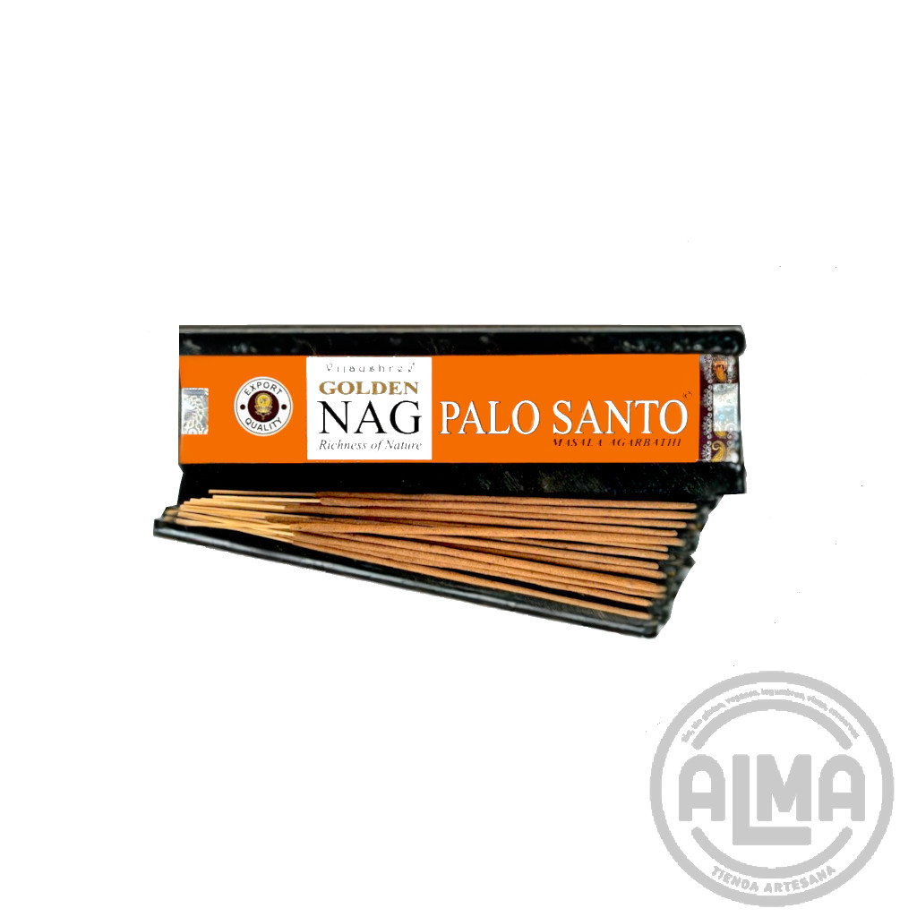 Golden Nag Palo Santo incluye el característico del aroma del palo santo sudamericano, este incienso fusiona la dulzura amaderada de esta madera sagrada con el estilo masala de la India. Aporta protección energética, calma emocional y es ideal para limpiezas espirituales o ritualesl característico aroma del palo santo sudamericano, este incienso fusiona la dulzura amaderada de esta madera sagrada con el estilo masala de la India. Aporta protección energética, calma emocional y es ideal para limpiezas espirituales o rituales.