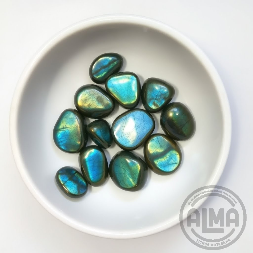 La labradorita es una piedra de protección y transformación. Su energía ayuda a bloquear influencias negativas, fortalecer el aura y potenciar la intuición. Vinculada a la magia, la creatividad y el autoconocimiento, facilitando la conexión espiritual y el despertar de dones psíquicos. También es una aliada en momentos de cambio, aportando claridad y seguridad en el camino personal.