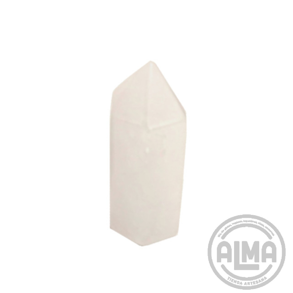 El cuarzo blanco en forma de punta hexagonal actúa como un potente amplificador de energía. Limpia y purifica tanto espacios como el campo energético personal, ayudando a mantener la mente clara y receptiva. Su forma canaliza la luz y la energía con precisión, ideal para elevar la vibración y potenciar cualquier intención espiritual o meditativa.
